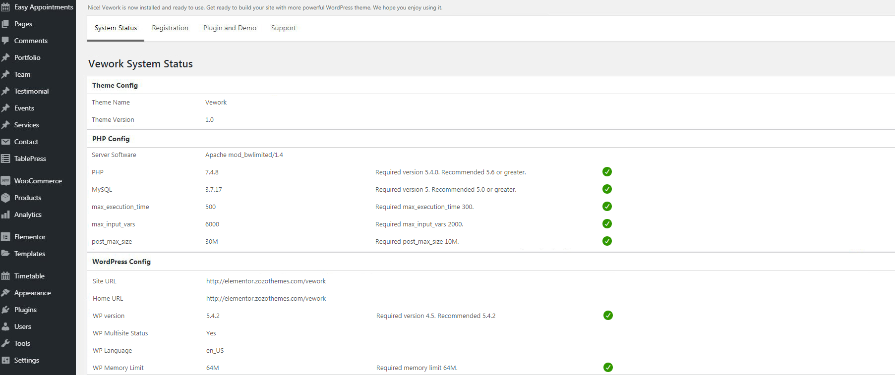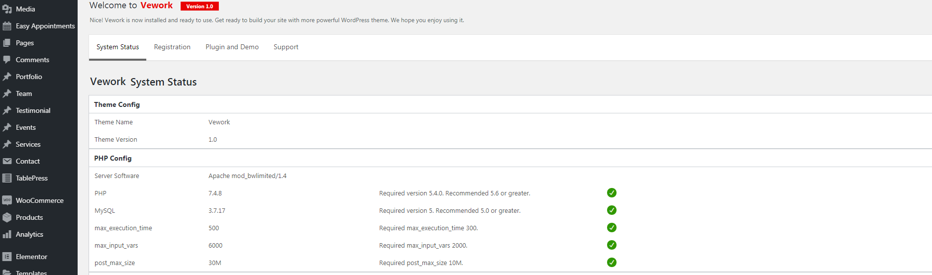 Plugin Installation: Admin Dashboard –>> Vework –>> Plugins –>> Install and Activate All required plugins.