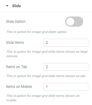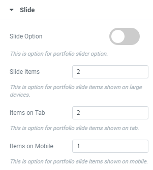 - Slide Items- This is an option for testimonial slide items shown on large devices.